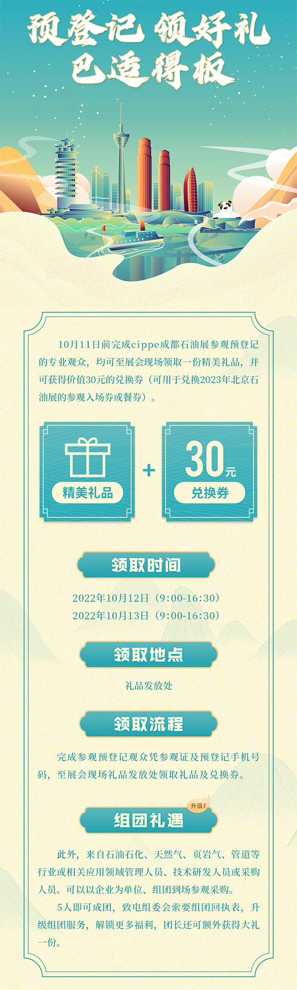 為了幫助觀眾快速入場(chǎng)參觀,現(xiàn)已開啟觀眾預(yù)登記。完成參觀預(yù)登記,現(xiàn)場(chǎng)即可領(lǐng)取精美禮品一份,同時(shí)獲得價(jià)值30元的cippe2023北京石油展門票一張。