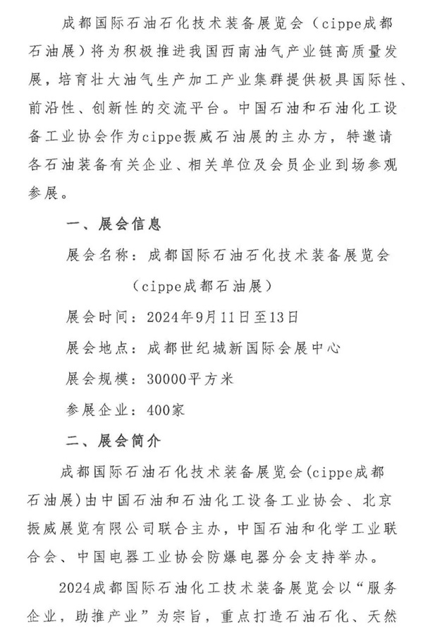 中國石油和石油化工設備工業協會作為cippe振威石油展的主辦方,特邀請各石油裝備有關企業、相關單位及會員企業到場參觀參展。