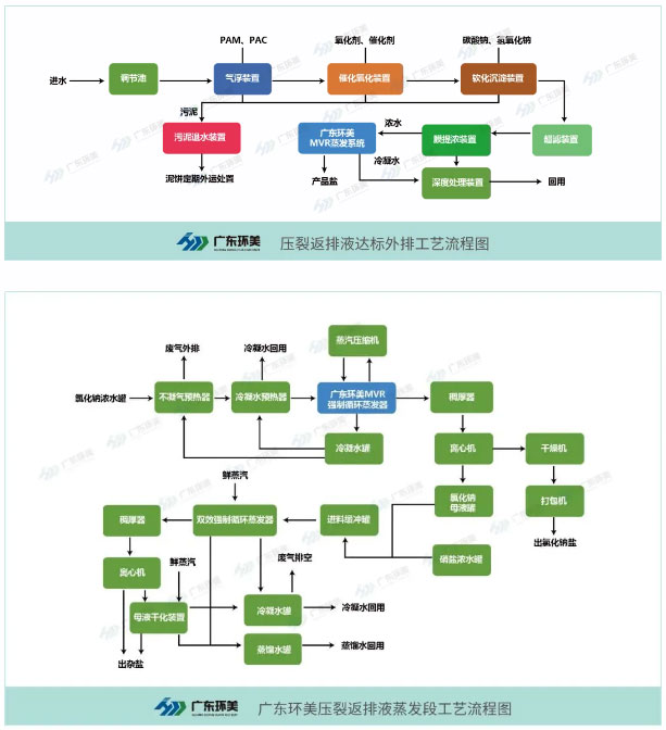 針對壓裂返排液的處理難點,廣東環美優化組合工藝路線,為客戶實現壓裂返排液無害化處理,達到水、無機鹽等有價物質的資源化利用。