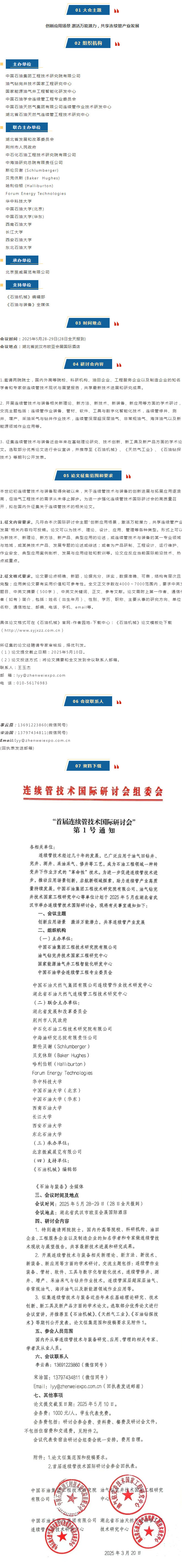 連續管技術經過幾十年的發展,已廣泛應用于油氣田鉆井、完井、測井、采油采氣、修井等工藝,成為石油工程領域一種轉變井下作業方式的“革命性”技術。為進一步促進連續管技術進步,推動應用場景創新,啟航新領域探索,助力連續管產業高質量持續發展,中國石油集團工程技術研究院有限公司、油氣鉆完井技術國家工程研究中心等單位計劃于 2025年5月29日在湖北省武漢市舉辦連續管技術國際研討會,屆時,將邀請兩院院士,國內外高等院校、科研機構、油田企業、工程服務企業以及制造企業的知名學者和專家齊聚一堂,聚焦國際視野,共話連續管技術新場景,共謀連續管技術發展新篇章。