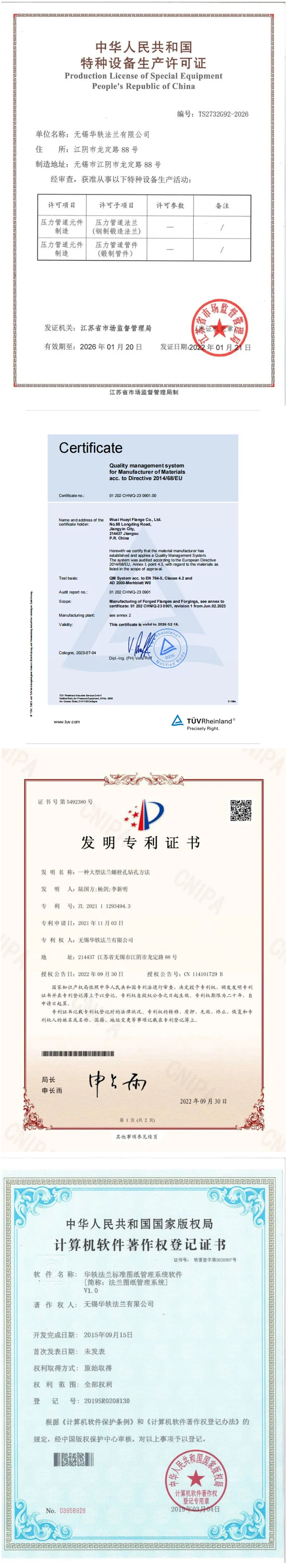 公司主要生產碳鋼、不銹鋼、雙相鋼、鎳基合金鋼等多種材質的法蘭和鍛件,年產銷法蘭鍛件達8000多噸,年銷售額達2.5億。公司已通過ISO-9001:2015質量體系認證,擁有歐盟PED 3.1證書以及特種設備制造許可證等的認證。公司高度重視技術研發和產品開發工作,截止到目前為止,公司已擁有1項發明專利,1項軟件著作專利,45項實用新型專利,同時在2023年再次通過了“國家高新技術企業”!