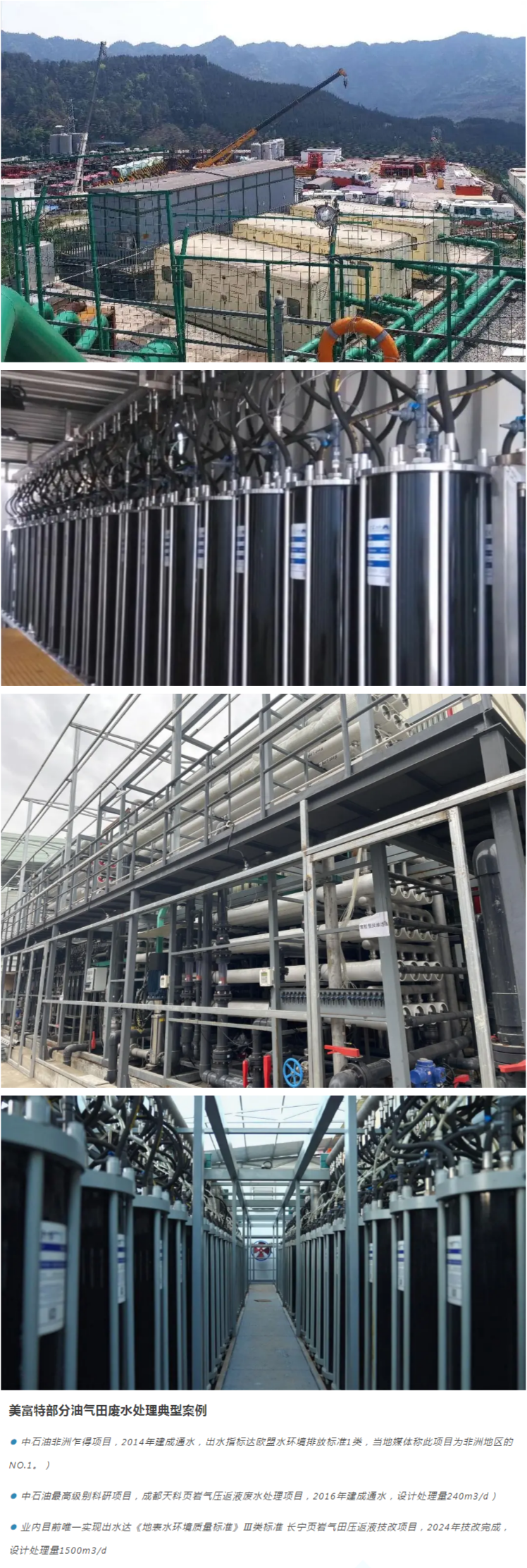 以特種膜技術(shù)為基礎(chǔ),美富特自主研發(fā)的MFT-MORE零排放資源化工藝包,正成為行業(yè)轉(zhuǎn)型升級(jí)的重要利器。該工藝包以“生化+物化+特種膜+蒸發(fā)”的全工藝鏈為核心,具備高度靈活性與適配性。在油氣田廢水資源化場景中,在膜分離濃縮段,通過引入特種膜SPNF和SUPER DT-RO/NF,實(shí)現(xiàn)高倍濃縮與減量蒸發(fā),不僅保障出水水質(zhì)穩(wěn)定達(dá)到地表Ⅲ類標(biāo)準(zhǔn),還能進(jìn)一步實(shí)現(xiàn)廢水零排放和鹽分分離提純,同時(shí)大幅縮減蒸發(fā)規(guī)模,降低系統(tǒng)投資與運(yùn)行成本。
